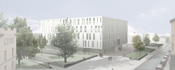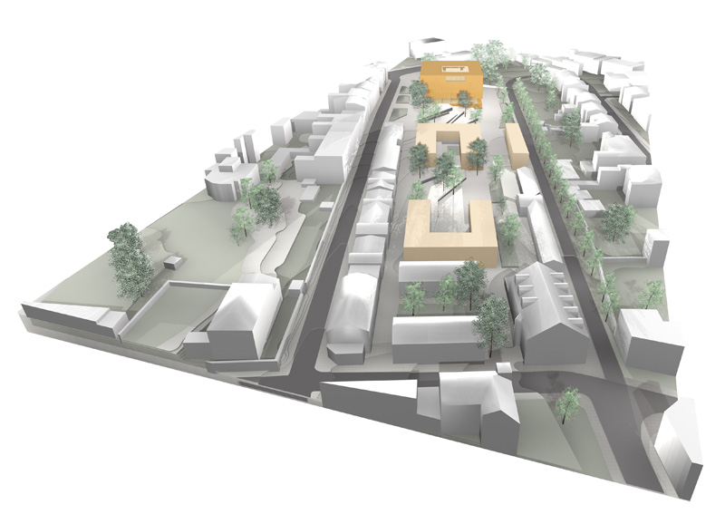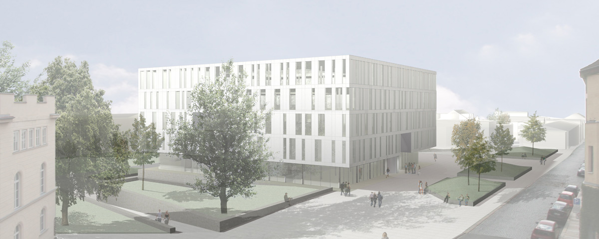 Der Neubau der Bibliothek ist der Abschluß und Auftakt der entstehenden Neubauten auf dem Campus.