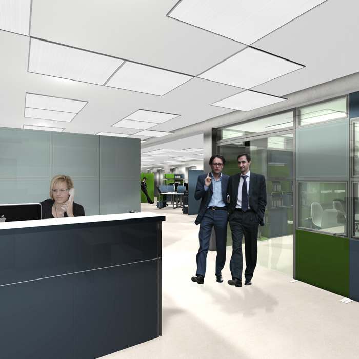 Ein modulares System aus einzelnen Komponenten, die an ein Baukastensystem erinnern, ermöglicht es, den eigenen Arbeitsplatz jederzeit ohne großen Aufwand (werkzeuglos) an die jeweiligen Bedürfnisse des Mitarbeiters und an die Anforderungen an das Planungsteam anzupassen.Um den Aufwand möglichst gering, die Varianten aber möglichst zahlreich zu halten, gibt es lediglich 2 Grundrahmenraster mit 4 verschiedenen Blenden und ein Regalkastensystem, das ebenfalls in die Rahmen eingefügt werden kann. Ein wichtiger Grundgedanke bleibt hierbei der offene Arbeitsraum, der zugleich Rückzugsmöglichkeiten und individuelle Gestaltung zulässt.