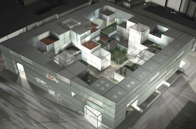 Es wird das größtmögliche Volumen in Betracht gezogen und der daraus entstandene Körper wird als Ganzes gesehen; dadurch entsteht eine optimale Ausnutzung des Grundstücks und der Körper fügt sich in die städtebauliche Struktur ein.
