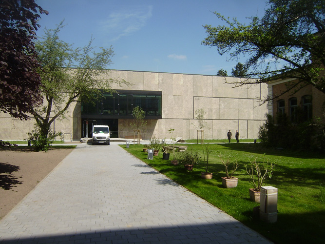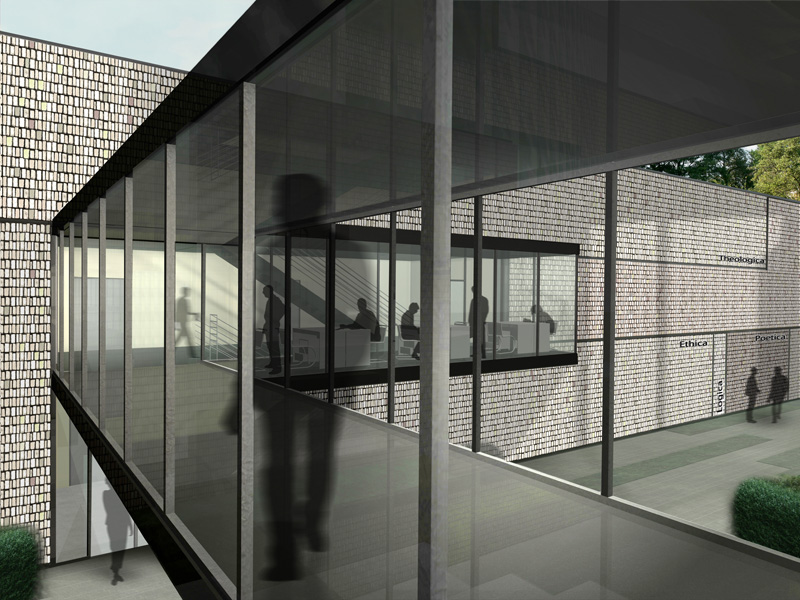 Es wird eine neue Hofsituation geschaffen, bestehend aus dem Neubau des Magazingebäudes und des Servicegebäudes und den Bestandsgebäuden der Bibliothek und des Direktoren-hauses. Der Verbindungsgang zwischen Bibliothek, Servicegebäude und Magazin bildet eine schützende Klammer um das Direktorenhaus und hält einen respektvollen Abstand. Basierend auf der Idee der berühmten alten, 1890 abgerissenen Bibliothek, die unter Leibniz 1705 entstand, sollten die Bücher wieder architektonisch zur Geltung gebracht werden. Heller, stehender Klinker, dunkel verfugt, symbolisiert die pergamentgebundene Büchersammlung des Herzog- August. Die Klinker werden in der Fassade in unterschiedlich große Felder gegliedert analog der Gliederung des Buchbestandes in 20 verschiedene Sachgruppen.