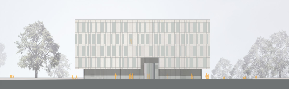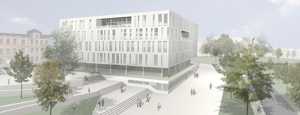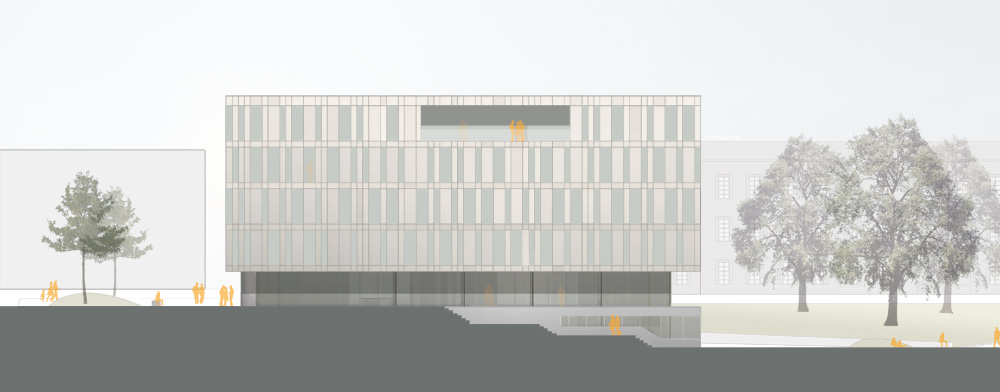 Der Neubau der Bibliothek ist der Abschluß und Auftakt der entstehenden Neubauten auf dem Campus.